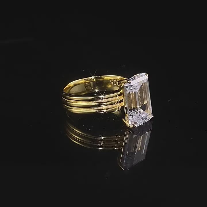 2025 New Style S925 Gold-Plated Silver 8*12 Rectangular Pagoda High Carbon Diamond Ring