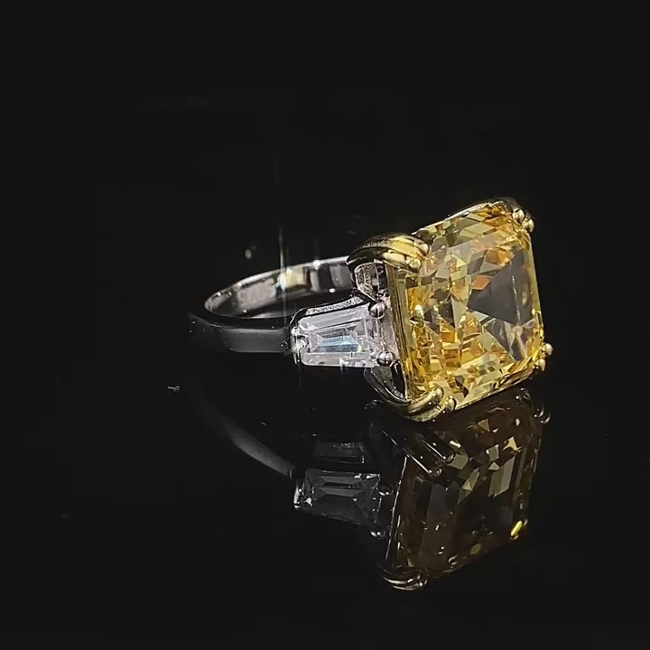 925 Silver Pagoda 12 * 12mm Asche High Carbon Diamond Yellow Diamond Ring