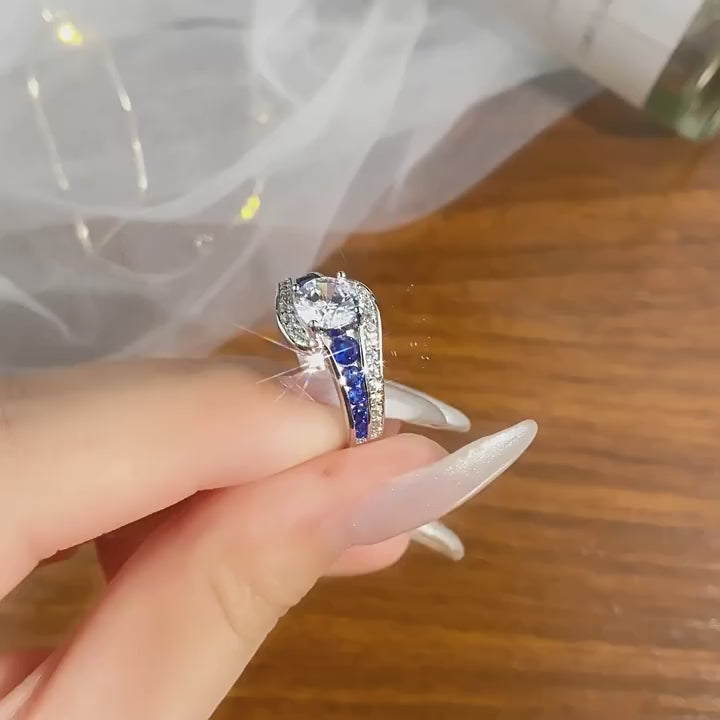 Blue Enchantress Moissanite Ring for Women S925 Sterling Silver Light Luxury Band