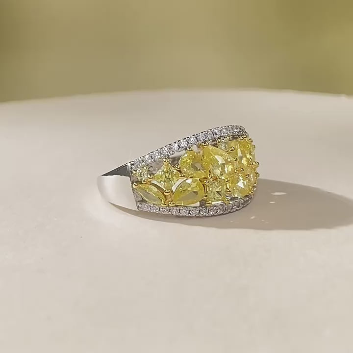 Light Luxury Ins-Style Micro-Pave High Carbon Diamond Women's Yellow Full Pavé Ring Versatile Elegant Design