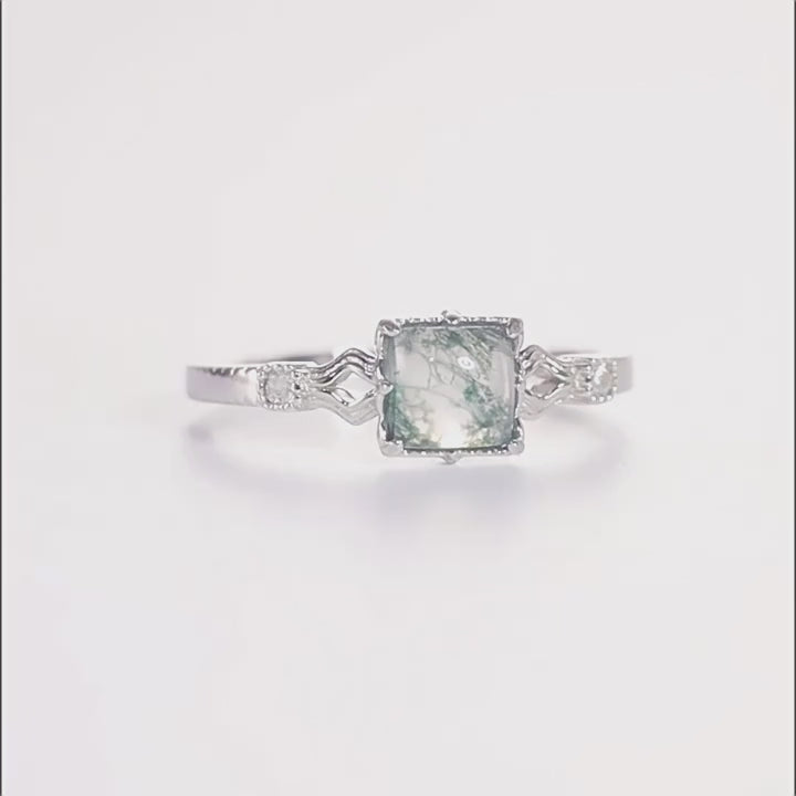 Light Luxury Moss Ring Versatile Fashion S925 Sterling Silver with Moss Agate