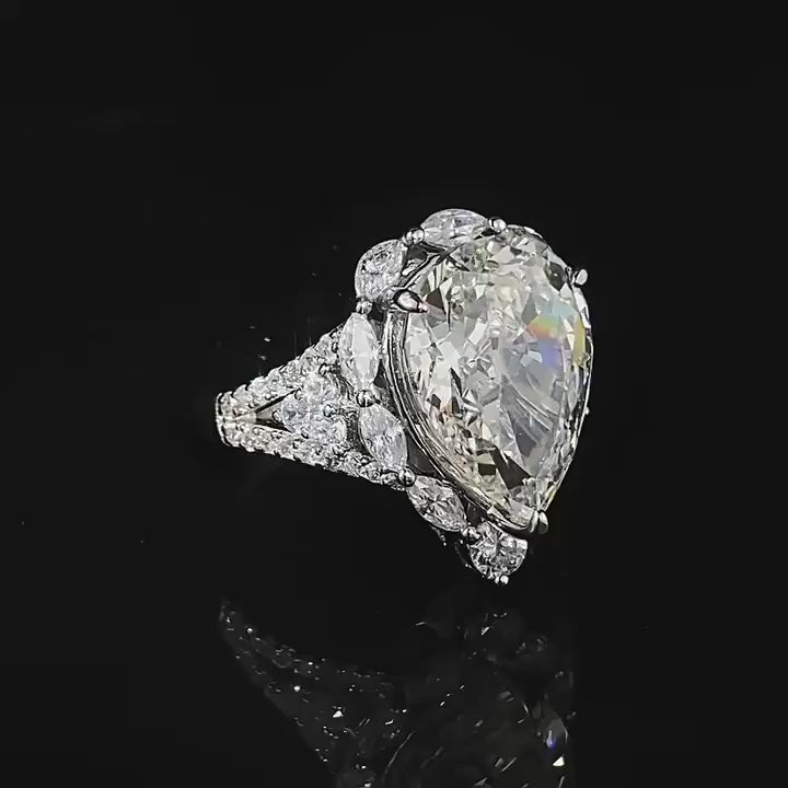 Luxurious Cluster-set High-carbon Imitation Diamond G Color 10*14mm Large Pear Cut Water Drop Engagement Ring