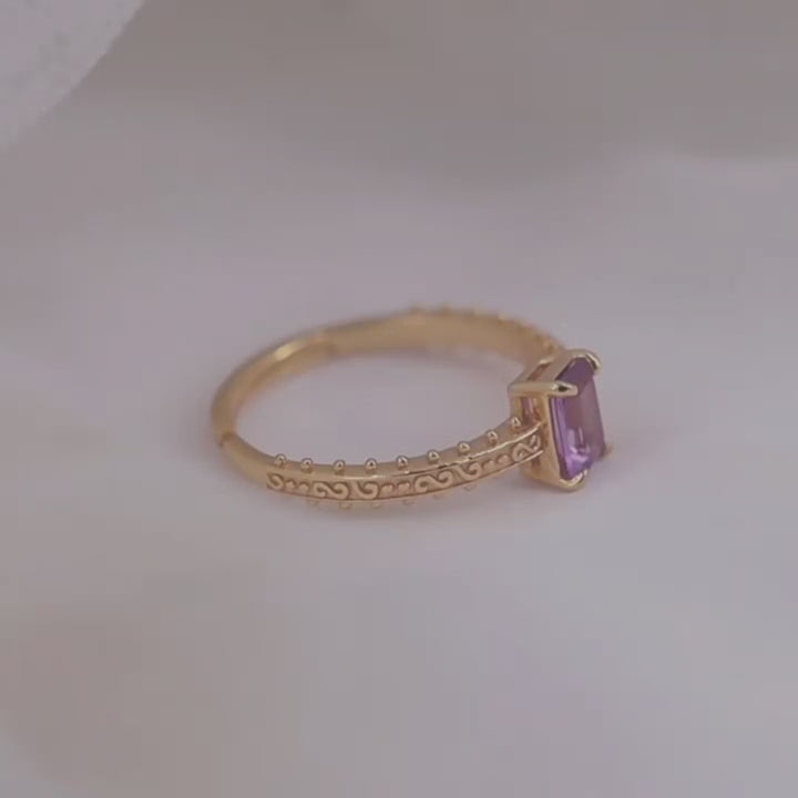 Luxury Amethyst Ring in S925 Sterling Silver Vintage Floral Royal Style Ring for Women