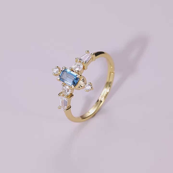 Luxury Vintage London Blue Topaz Ring in S925 Sterling Silver Gold-Plated Royal Court Style Jewelry