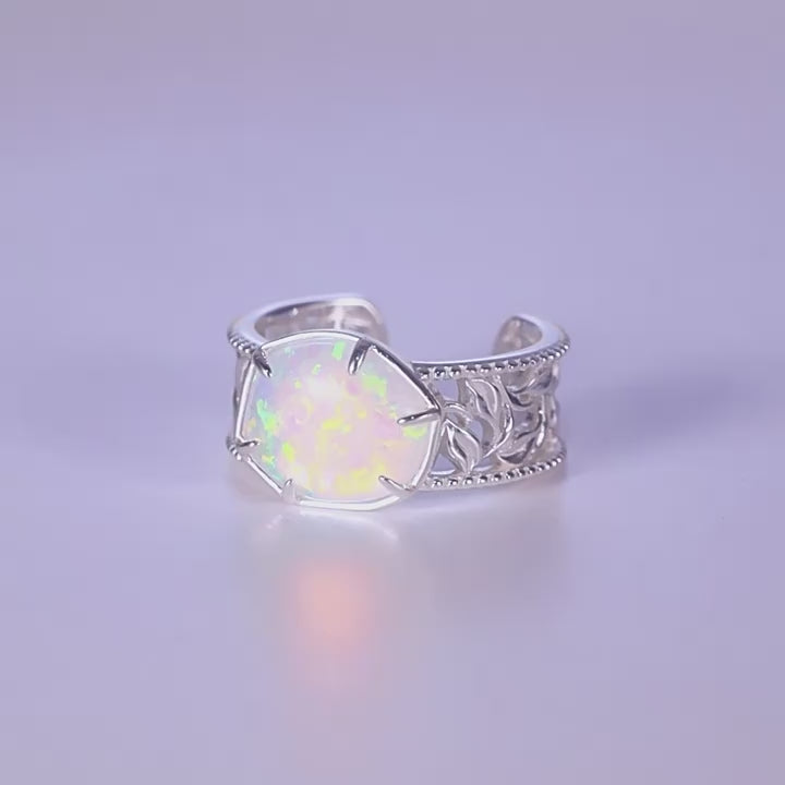 Minimalist Geometric Opal Ring – S925 Sterling Silver Adjustable Open Ring for Women