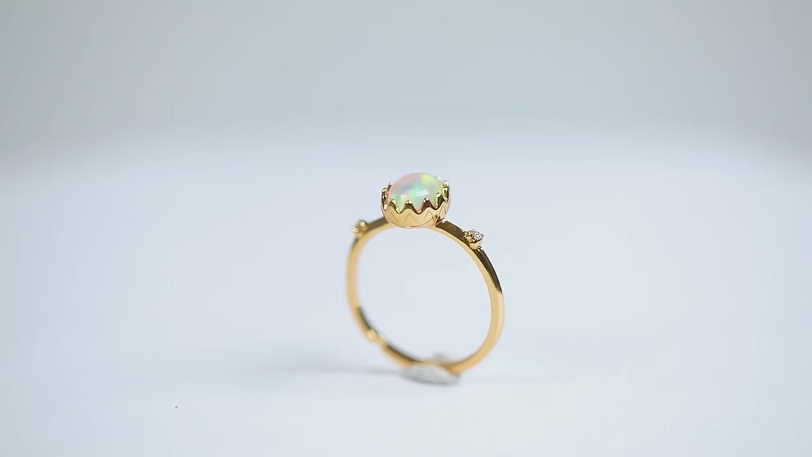 Modern Geometric Opal Band Gold Tone Sterling Silver Stackable Ring