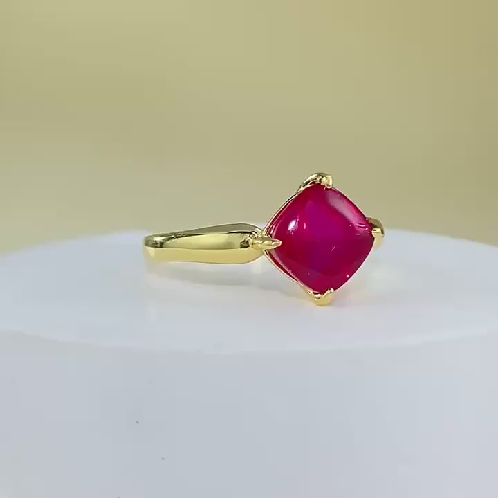 New 7 * 7 Pigeon Blood Brown Sugar Tower Ring S925 Silver Plated Gold Base Stackable Style