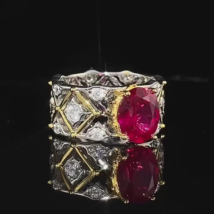 New Italian Craftsmanship Palace Retro 7 * 9mm Dove Blood Red Ring with Elegant Style