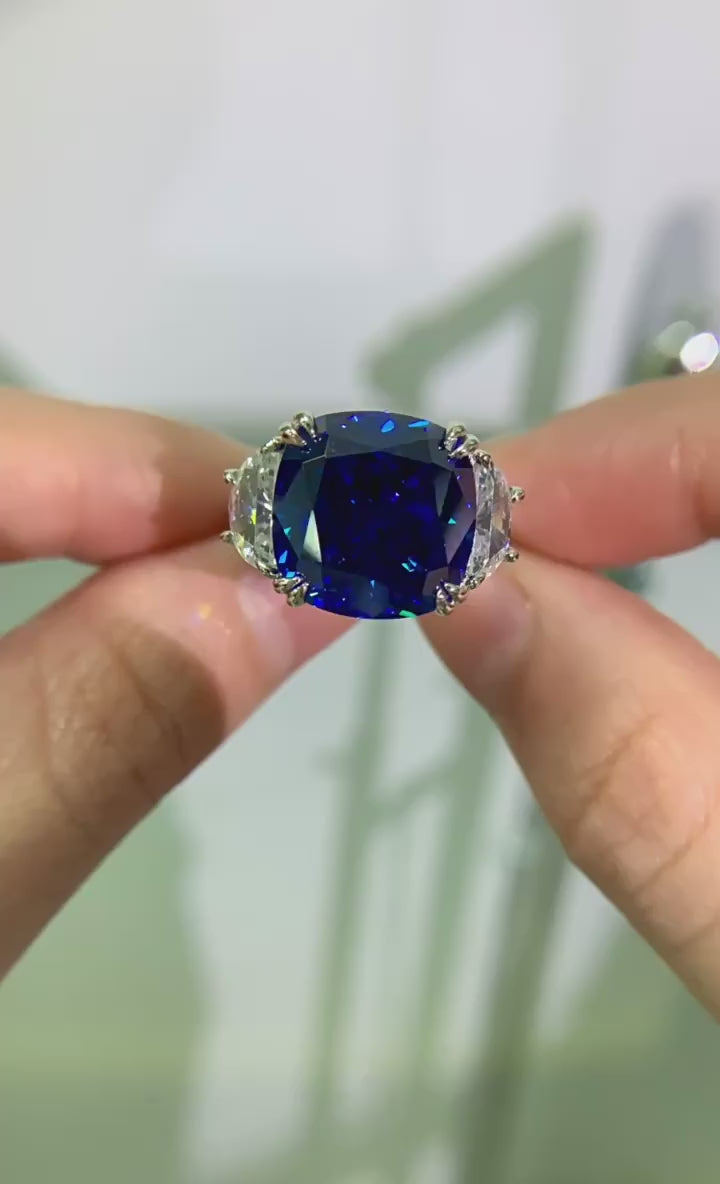 New S925 Silver 13*13mm Royal Blue Premium Feel Ring