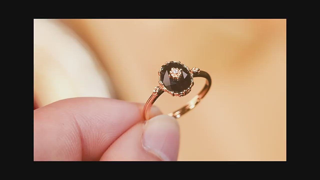 Popular black agate ring with retro pattern S925 sterling silver ring