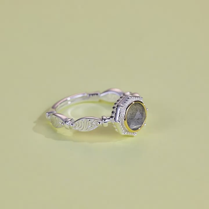 Popular elongated stone ring female artistic retro S925 pure silver gold-plated ring niche design