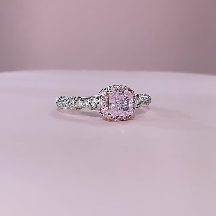 S925 Silver 5 * 5mm Cushion Cut Sugar Pink Diamond High Carbon Diamond Ring