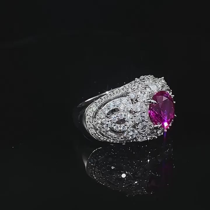 S925 Silver Fashion Commuter 8.0mm Pink Round Diamond Ring