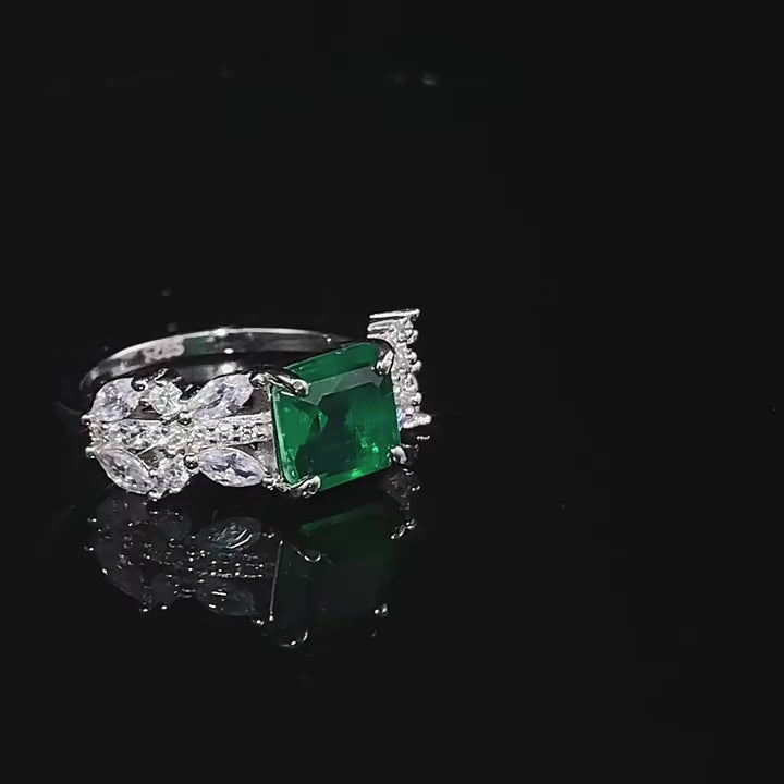S925 Sterling Silver 7x7mm Simulated Emerald & High Carbon Diamond Ring-Minimalist Design