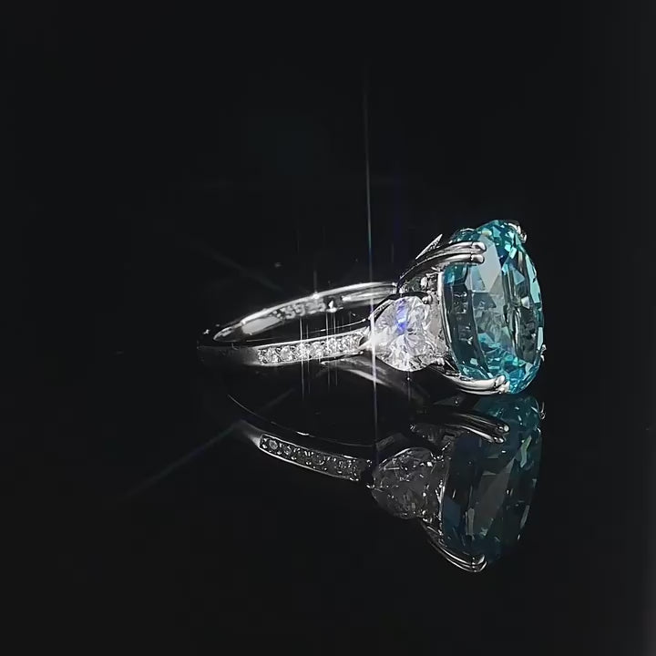 S925 Sterling Silver Aqua Blue Ice Flower-Cut 10x12mm Oval Women's Ring