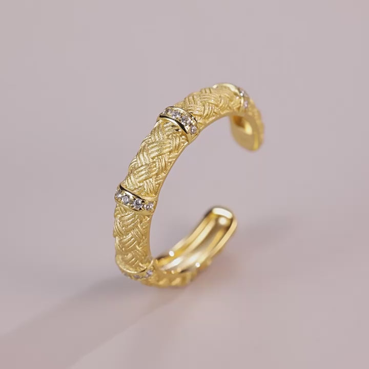 Vintage Handwoven Brushed Ring S925 Gold Plated Sterling Silver Light Luxury Open Band